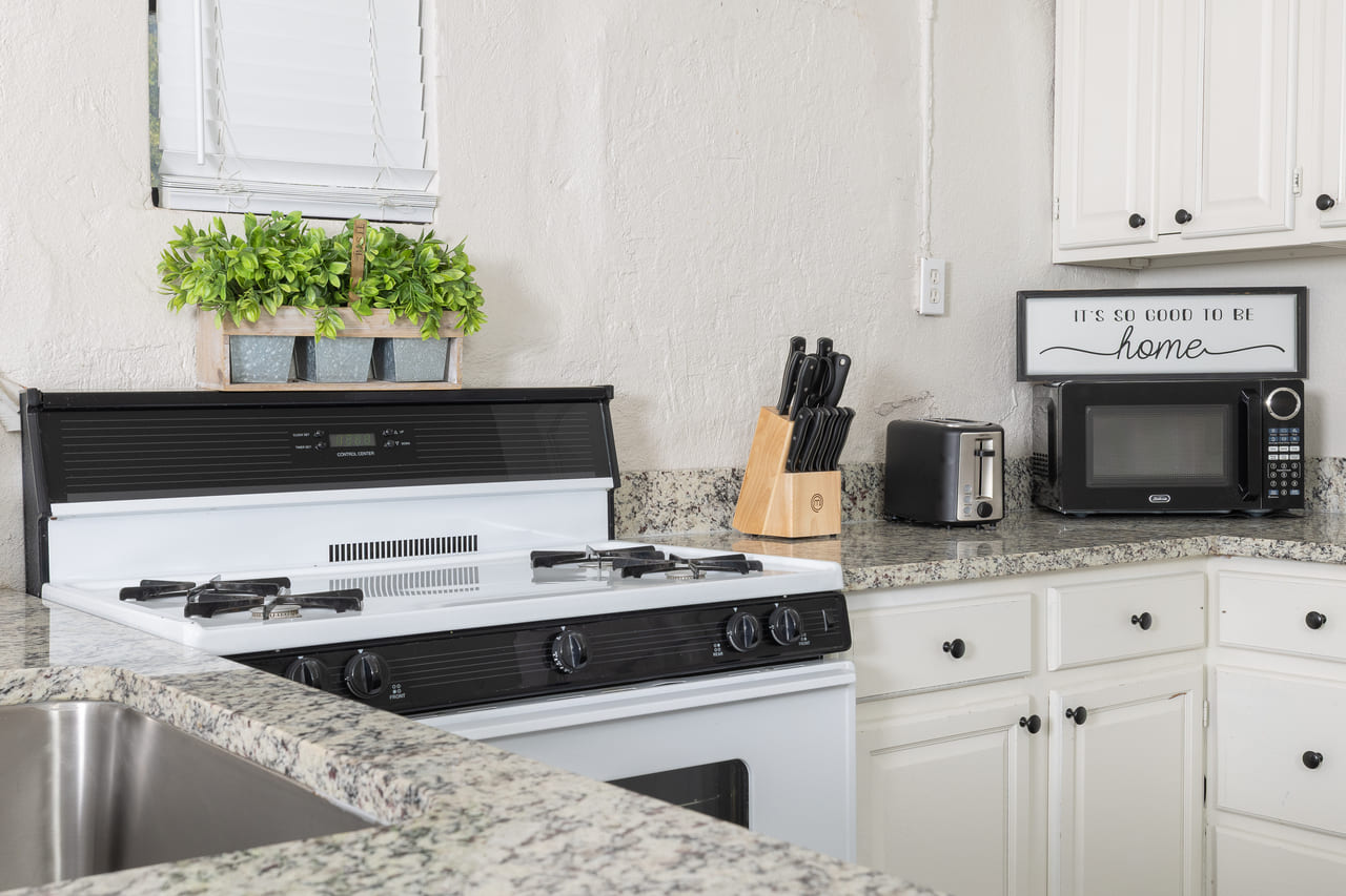 Comfortable bedding, kitchen access, and security features you can rely on.